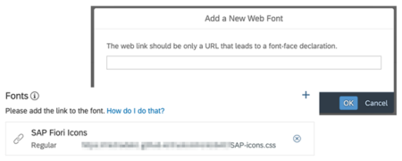 Weitere Schriftarten lassen sich mit Hilfe der Funktion „Add a New Web Font“ (System -> Administration -> Default Appearance) in die SAC einbinden. Die Schriftart wird durch Angabe einer URL hinzugefügt. Sowohl die Schriftart als auch eine CSS-Datei, die diese referenziert, müssen hierfür auf einem separaten Server bereitgestellt werden.