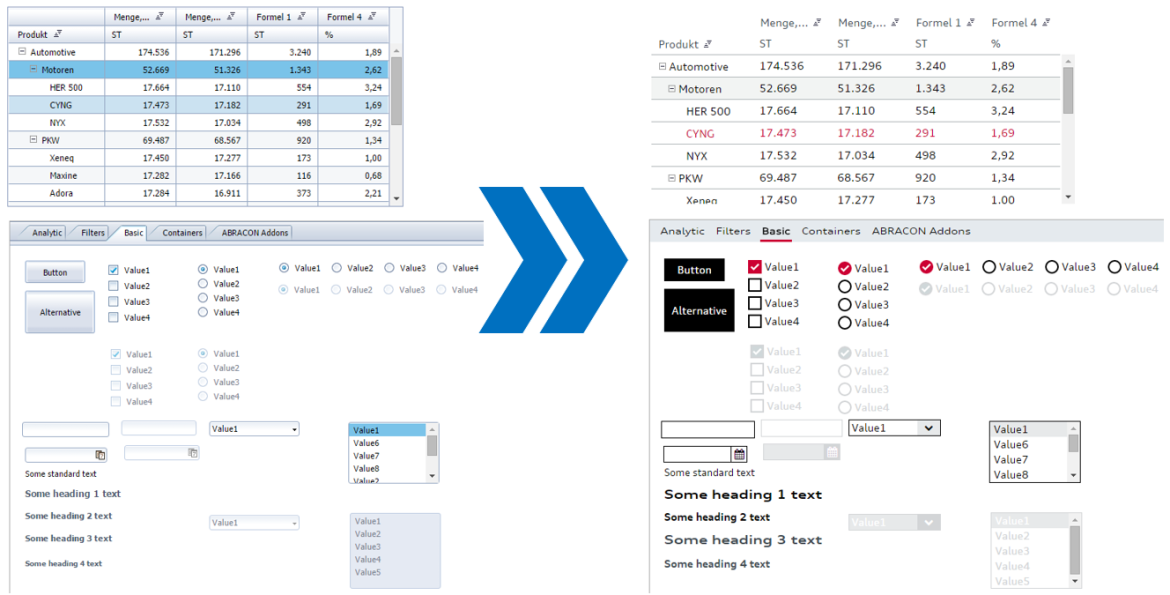 Das ABRACON Apply CI Add-on bietet die Möglichkeit verschiedene Designs auf SAP Lumira Designer (ehem. SAP BO Design Studio) Applikationen anzuwenden. Welcher Style angewendet wird, kann der Dashboard Designer ganz einfach über eine Dropdown-Liste in den Properties festlegen.
