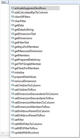 Die Connector-API bietet auf Entwicklungsebene Wrapper-Funktionen an, die sich um die Erstellung der MDX-Statements kümmern. Somit ist es für den jeweiligen Entwickler nicht zwingend nötig, tiefe MDX-Kenntnisse zu haben. Geplant ist, diese Logik auch zu erweitern und auch TM1-Views anbinden zu können (s. u. Future Direction).