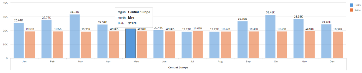 Da diese Komponente ein reines SAC Custom Widget ist, kann sie auch mit den Standard-Widgets des SAC über Events (zum Beispiel durch Mausklicks auf eine Zeile / Zelle) kommunizieren und interagieren. Dadurch lassen sich Filterungen durch Klick in Zeilen bereits umsetzen.